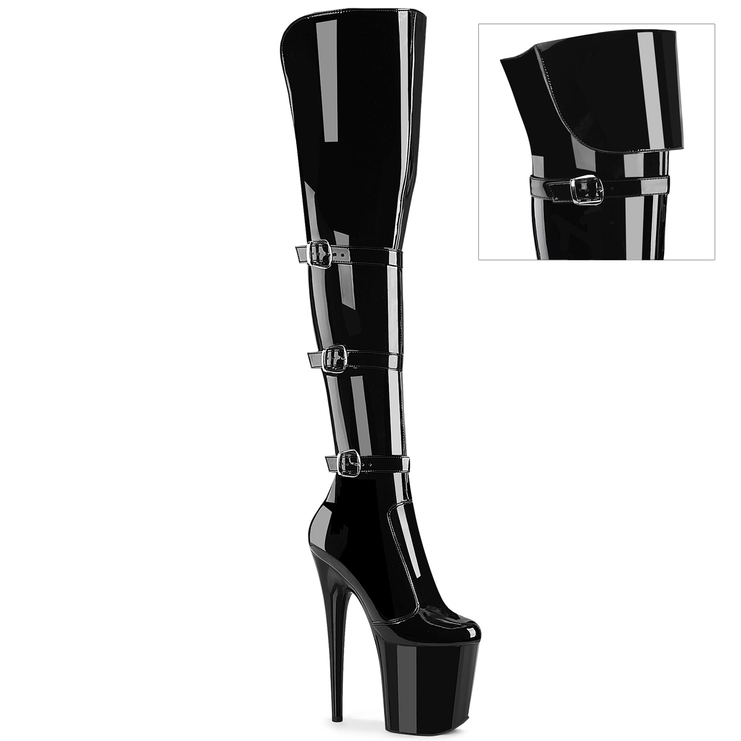 • 4" (100mm) Platform Triple Buckle Strap Stretch Over-The-Knee Boot
