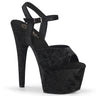 7" (178mm) Heel, 2 3/4" (70mm) Platform Ankle Strap Sandal Featuring Shimmering Fabric Upper and Fully Wrapped Matching Platform Bottom
